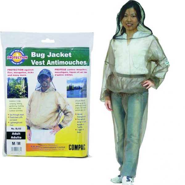 The Compac Bug Jacket made of 100% polyester mesh is a perfect way to keep out those pesky mosquitoes and flies during outdoor activities. The jacket features a zippered head and face opening as well as ribbed wrist cuffs and elastricized waist band.