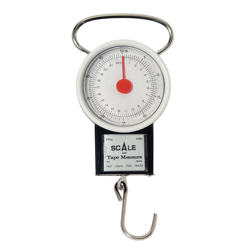 Our Compac® Big Face Scale and Tape is an easy to read gauge that weighs up to 50lbs/22kg. Dual use scale also features a 39" tape measure and convenient top handle.