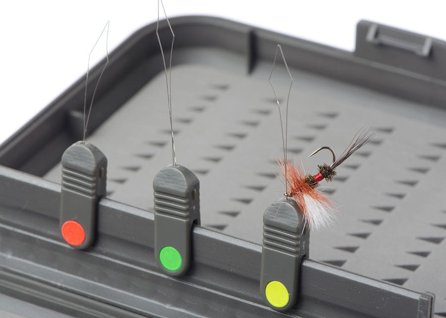 By pre-threading the fly on the threader the fisher can quickly and easily thread the leader through the eye of the fly using the threader. Then, insert the leader into the threader loop and then pull the fly up and off of the threader.