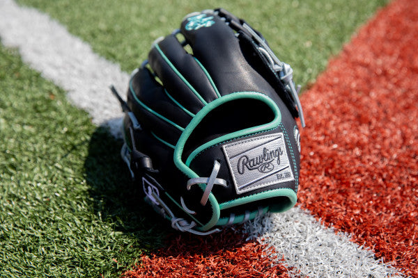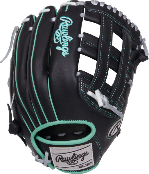Prowl the infield with the Rawlings NXT ContoUR 12.5-inch outfield glove. We designed and crafted this series for the typical travel ball player, as it features high-quality leather, making it easier to break in and shape the way you need it to! This 12.5-inch outfield glove sports a Pro-H web, allowing for quick transfers to throw out runners on the base paths. The 302U pattern provides fielders with a deep pocket and extension that is perfect for reeling in balls that may be out of reach. For added comfort of the glove, this entire collection reps the ContoUR fit, giving players with thinner hands a more secure fit. Additionally, there are padded thumb sleeves to help eliminate the sting of line drives hit your way. The colorway on this NXT infield glove sports a black shell with mint green stitching and piping. For added white accents, there is a white Rawlings patch and white laces. Bring some swagger into the outfield, thanks to the NXT series offering pro-style patterns, pro-web designs, and new colorways! Grab your Rawlings NXT ContoUR 12.5-inch outfield glove today.
