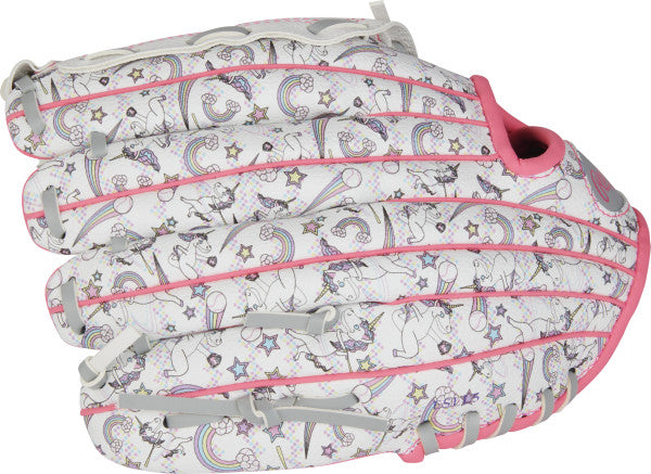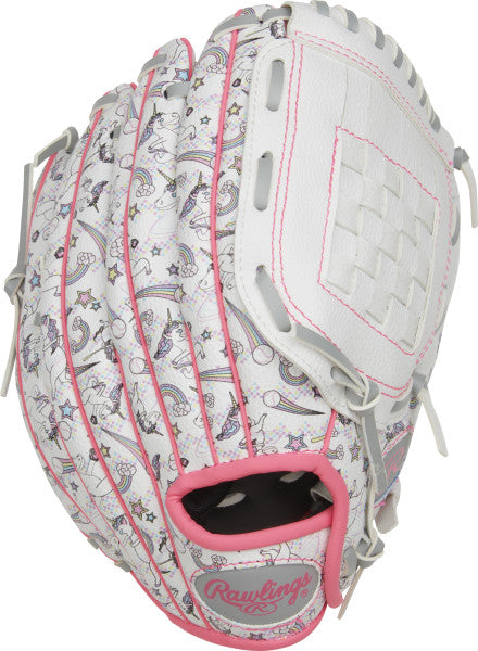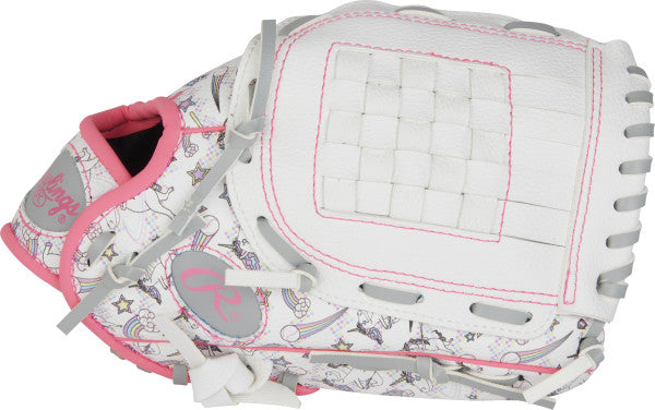 Your ballplayer will never want to take off this unicorn-print 10-inch Players Series glove from Rawlings! Featuring a magical unicorn-inspired design on the outer shell, this glove is sure to be a favorite of young ballplayers. Plus, the Players Series is designed with an ultra-comfortable hand opening and plenty of shock-absorbing padding, so you don't need to be afraid of sting. In addition, the wide-design heel makes for an easier close and better glove control for small hands. Help your youngster fall in love with their glove and get this Rawlings Players Series 10-inch Unicorn Print glove today!