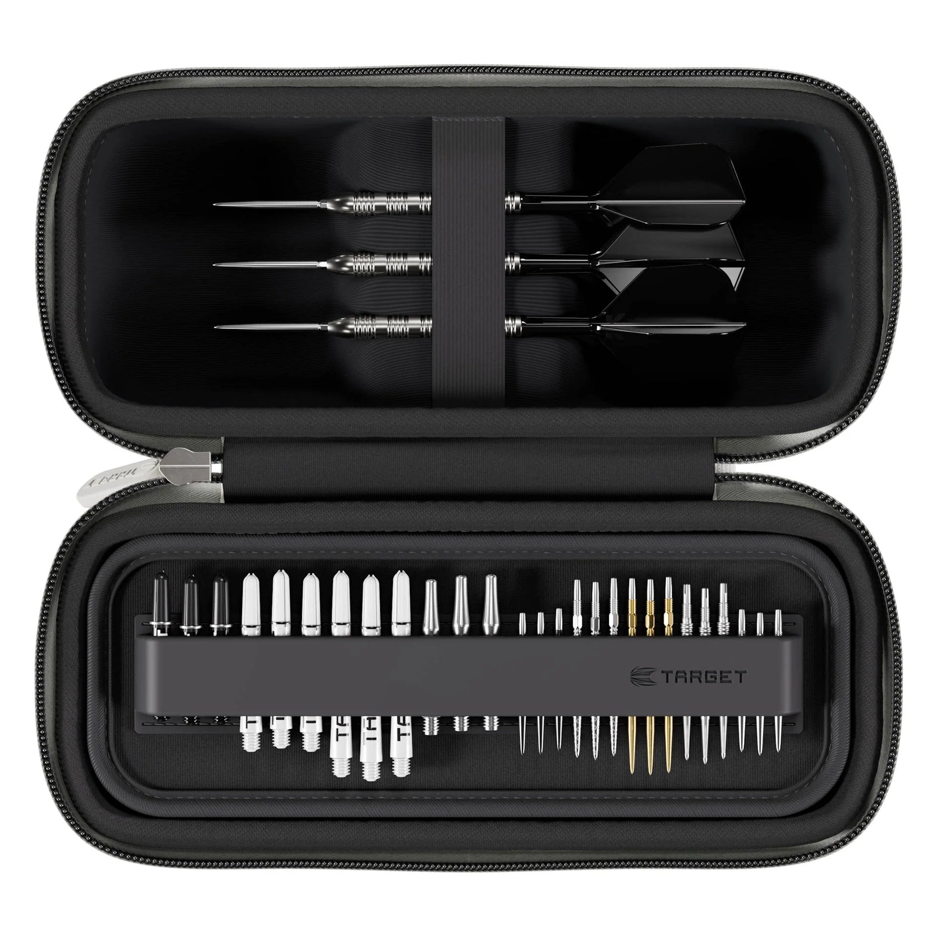 Designed for both functionality and protection, the BOA Wallet securely holds 6 fully assembled darts, plus a dedicated tray system for 12 shafts and 15 Swiss Point tips — making it the only dart wallet in the galaxy with built-in Swiss Point storage. Additional compartments provide space for flights, K-Flex accessories, and tools, ensuring every part of your setup stays organised and ready for battle.