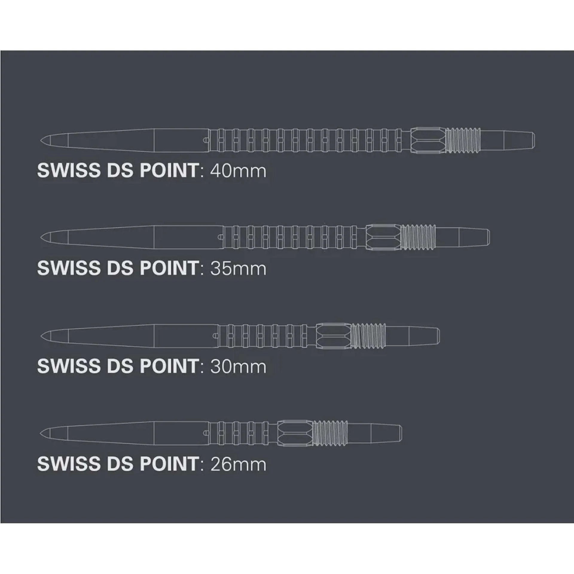 The Swiss DS point is a combination of Target's Diamond Pro and Surge points. The diamond grip at the front offers a laser-etched finish which phases into the surge grip at the base of the point offering an ultimate machined grip. The DS point delivers a stunning and unique grip unlike no other. Swiss Points are only compatible with Target Darts Swiss Point barrels.